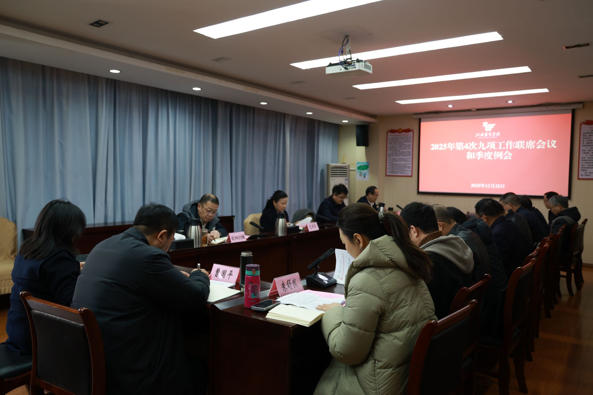 12月25日,学校召开2025年第4次意识形态、政治安全、网络安全、思想政治、精神文明、爱国主义教育、志愿服务、民族宗教、国家安全等工作联席会议和季度例会。在家校领导,联席会议主要成员单位、相关部门负责同志参加会议。