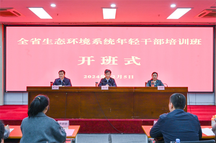 12月5日,全省生态环境系统年轻干部培训班开班式在学校培训楼举行。省生态环境厅党组书记余正琨讲话、校长龙国英出席开班式并致欢迎词,全省生态环境系统70名年轻干部参加了开班式。开班式由省生态环境厅党组成员、副厅长舒飞庚主持。
