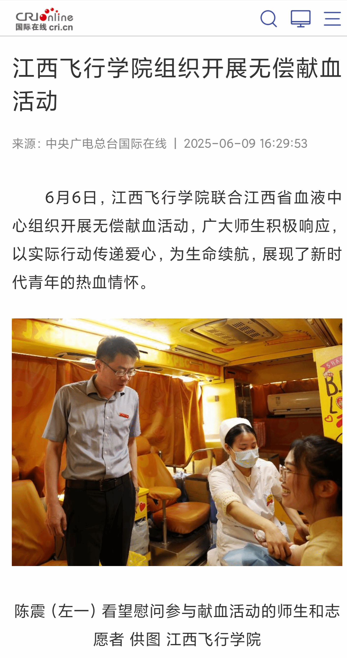 央广国际在线:江西飞行学院组织开展无偿献血活动