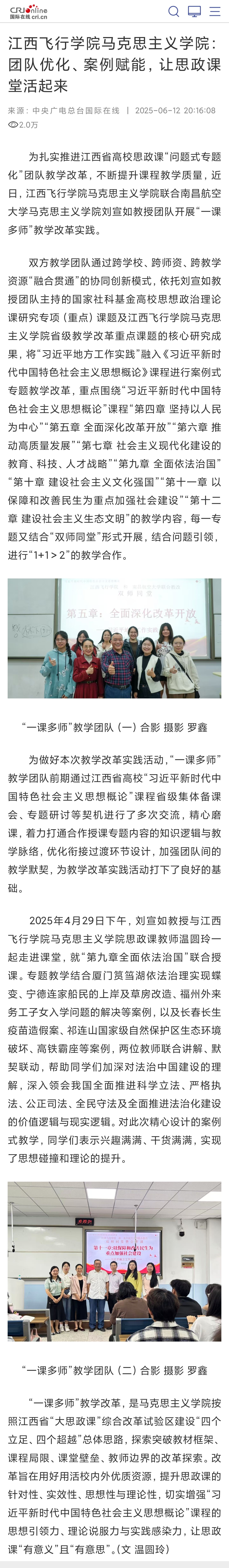 央广国际在线:江西飞行学院马克思主义学院:团队优化、案例赋能,让思政课堂活起来
