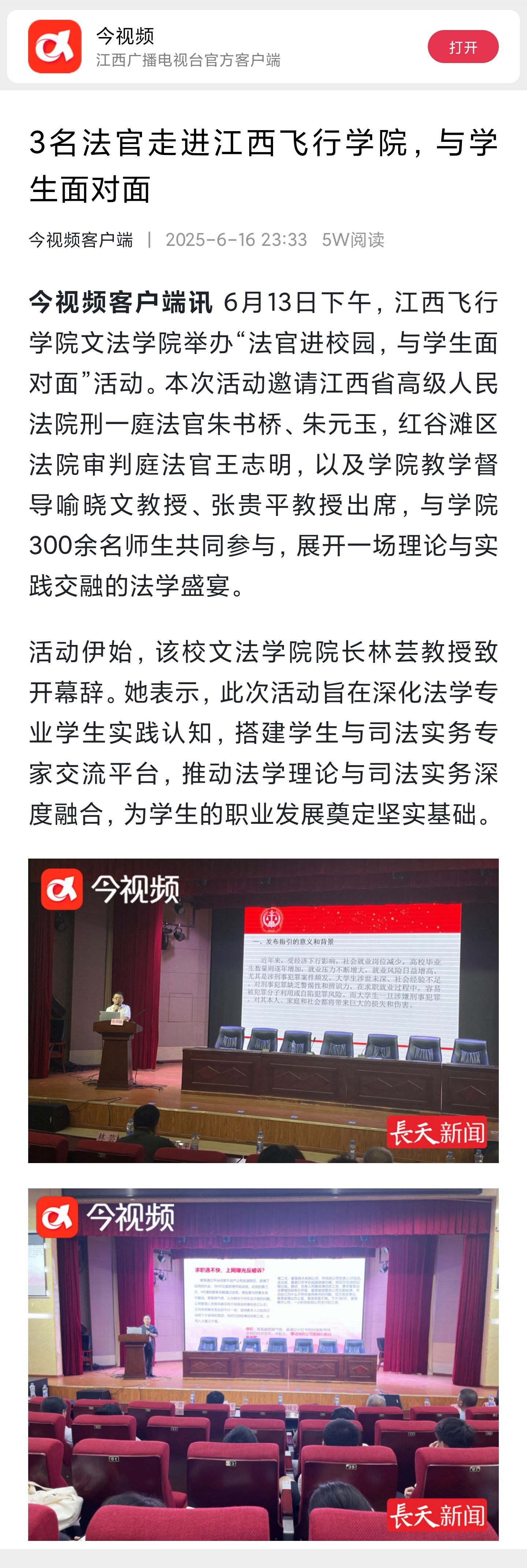 今视频:3名法官走进江西飞行学院,与学生面对面