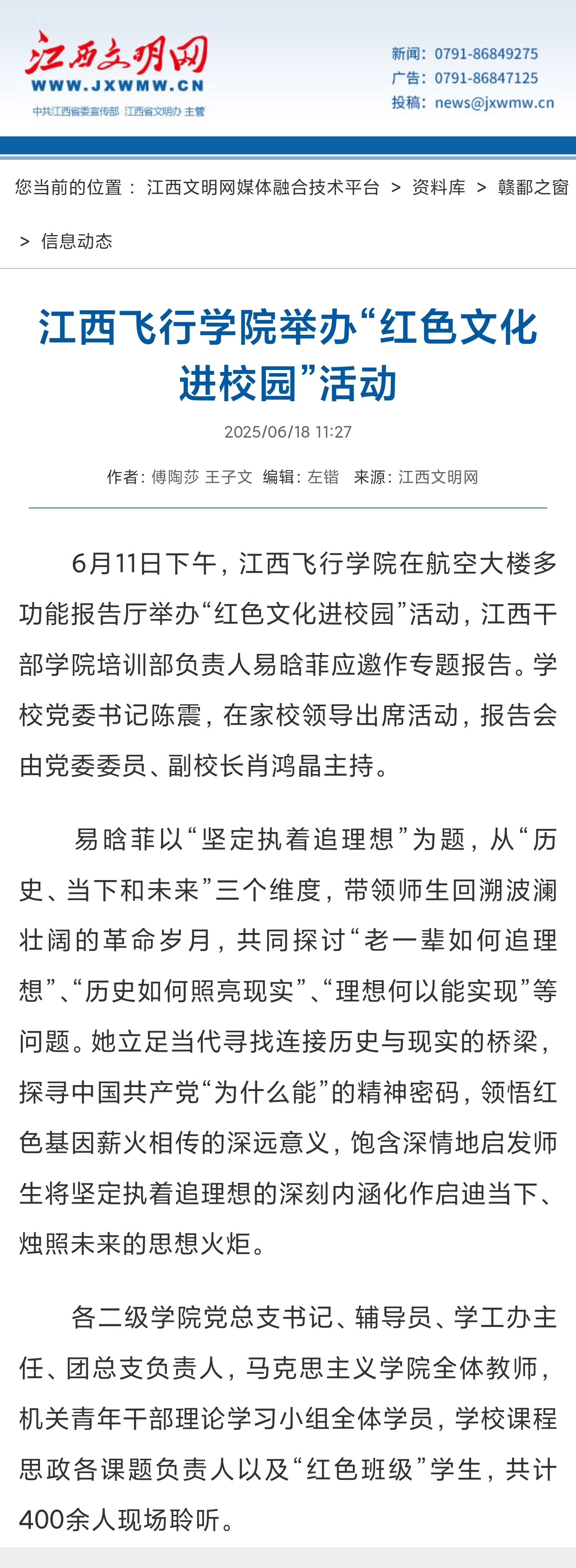 江西文明网:江西飞行学院举办“红色文化进校园”活动