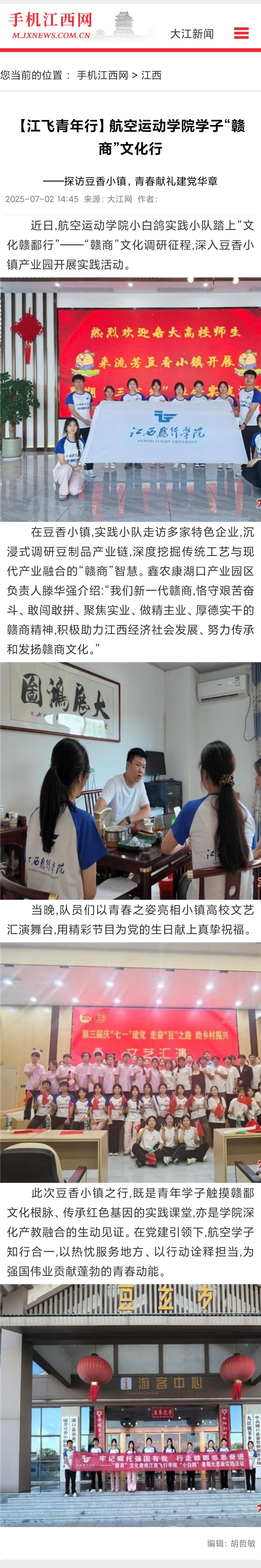 手机江西网:【江飞青年行】航空运动学院学子“赣商”文化行——探访豆香小镇,青春献礼建党华章
