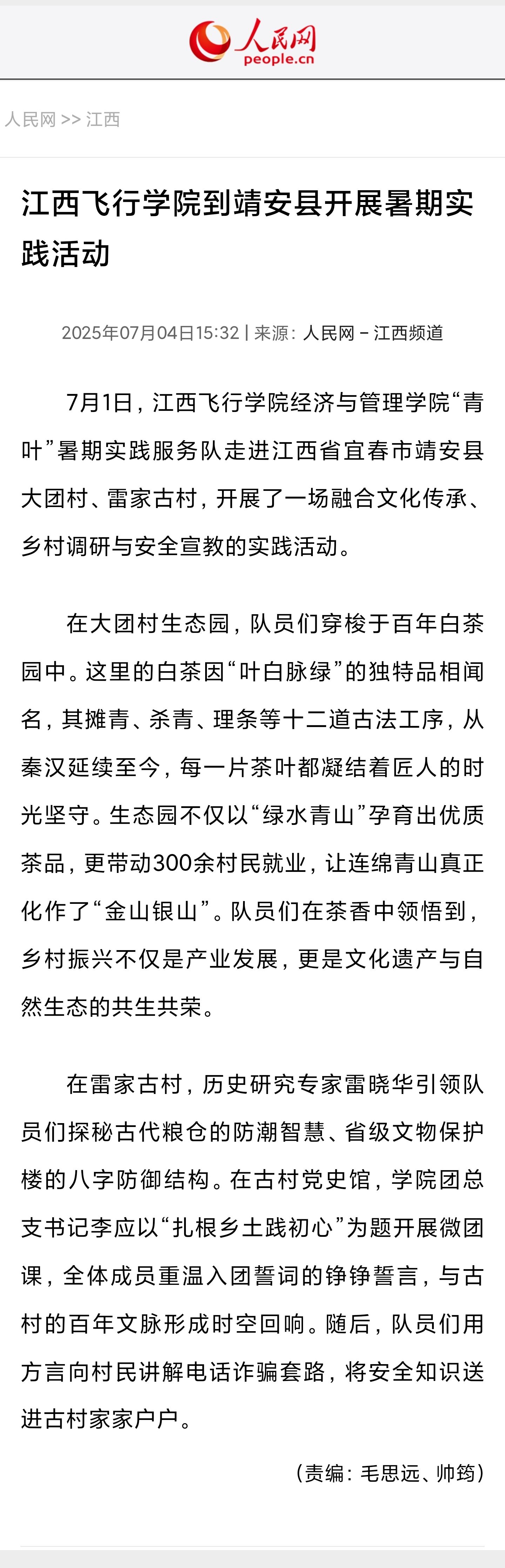 人民网:江西飞行学院到靖安县开展暑期实践活动