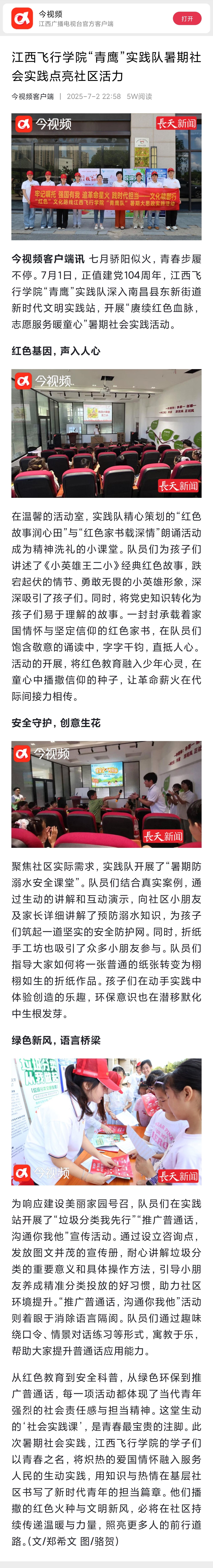 今视频:江西飞行学院“青鹰”实践队暑期社会实践点亮社区活力