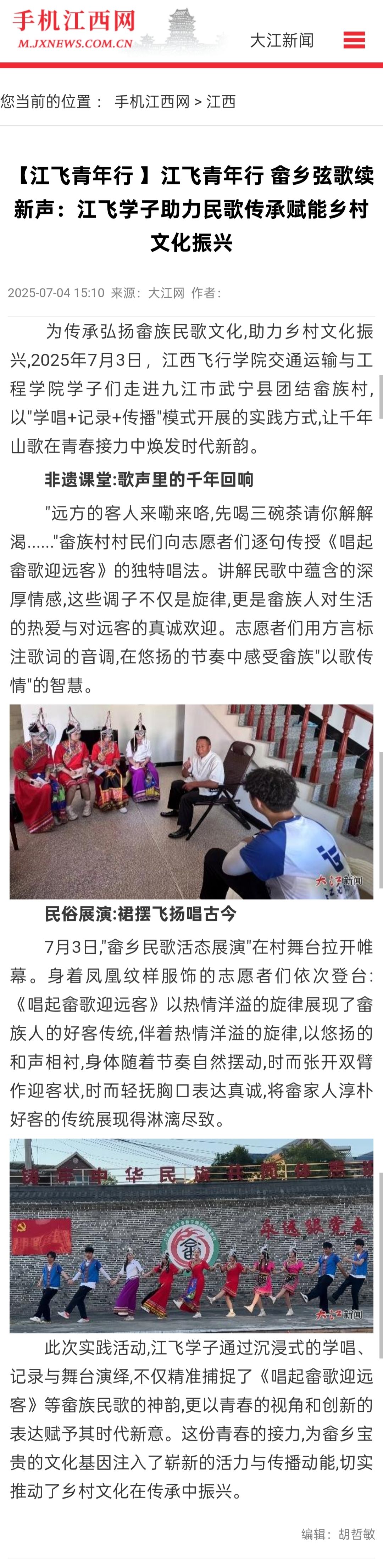手机江西网:【江飞青年行 】江飞青年行 畲乡弦歌续新声:江飞学子助力民歌传承赋能乡村文化振兴