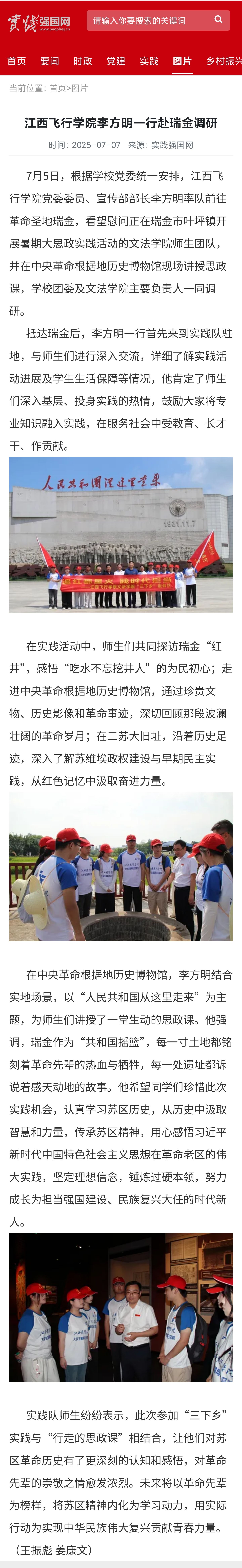 近日,实践强国网报道,江西飞行学院李方明一行赴瑞金调研详情如下: