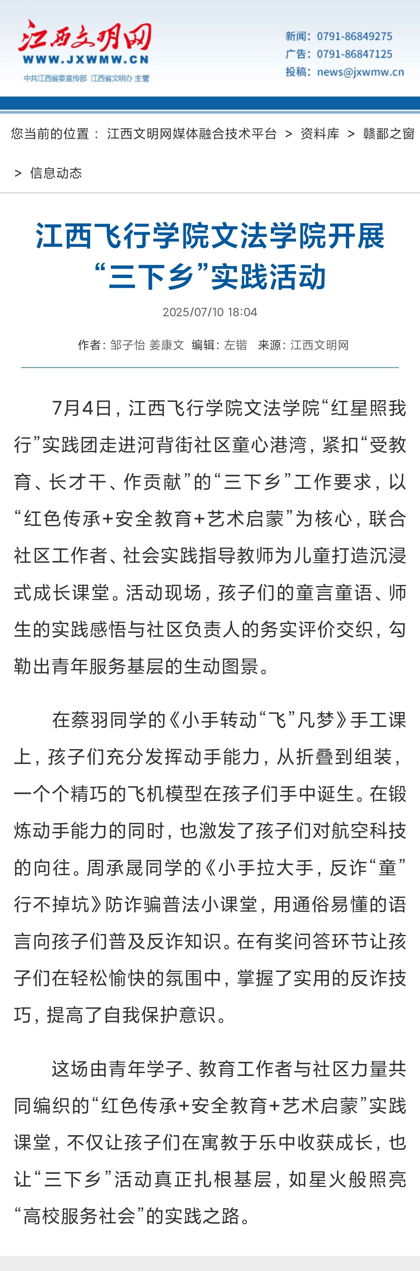 江西文明网:江西飞行学院文法学院开展“三下乡”实践活动