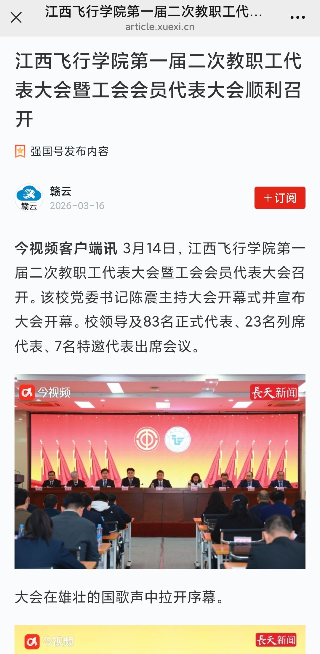 学习强国:江西飞行学院第一届二次教职工代表大会暨工会会员代表大会顺利召开