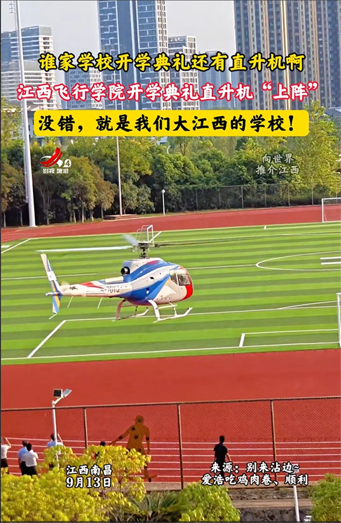 近日,江西广播电视台报道,江西飞行学院开学典礼直升机“上阵”。详情如下:
