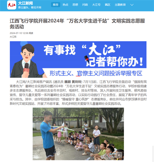 大江网:江西飞行学院开展“强国有我 青春有为”2024年“万名大学生进千站”文明实践志愿服务活动