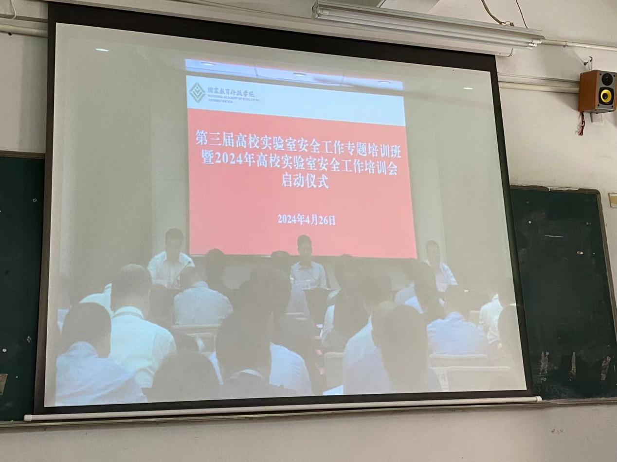 为进一步提升学校实验室安全管理水平,充分认识开展实验室安全培训的重要性,确保我校实验室安全运行,保障广大师生人身安全和校园稳定,落实《关于组织参加教育部2024年高校实验室安全工作线上培训会的通知》文件精神,2024年4月26日下午教务处在1101教室组织参加了第三届高校实验室安全工作专题培训班暨2024年高校实验室安全工作线上视频直播培训会议,教务处实训中心工作人员、各二级学院实验室安全相关负责人员、资产处主要负责人员,以及其他相关部门负责人员参加培训。