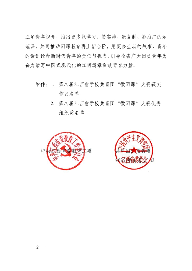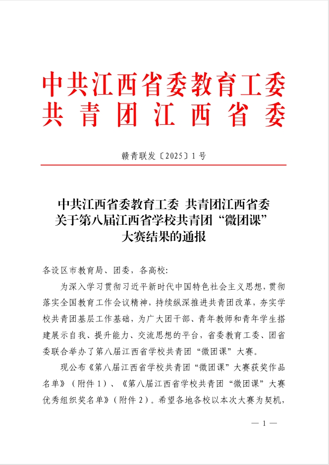 喜报!我校在第八届江西省学校共青团“微团课”大赛中荣获佳绩!