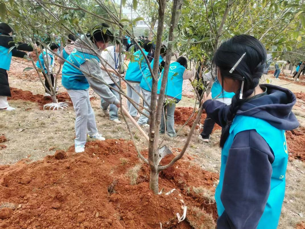 星火志愿者参加学校义务植树活动