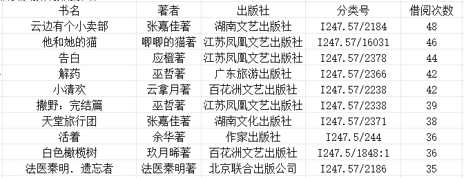 2.热门借阅书籍top10