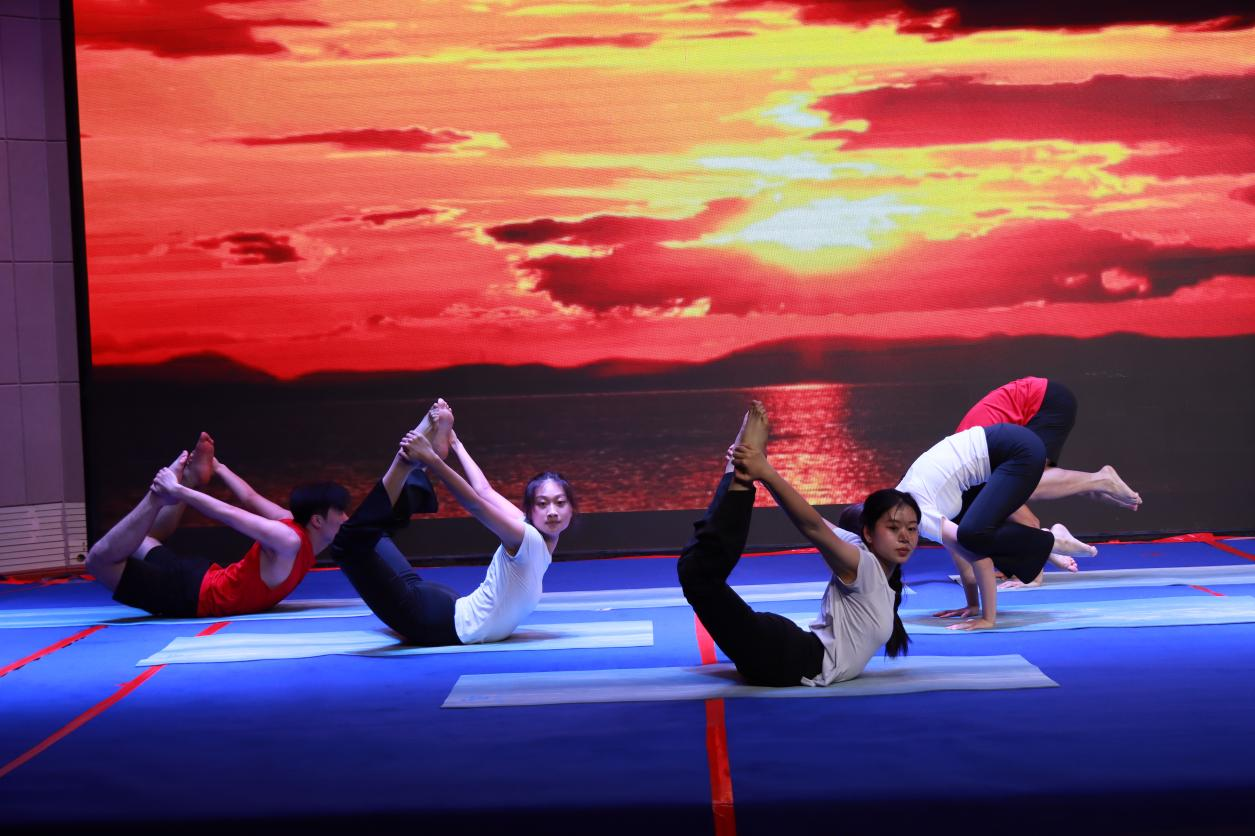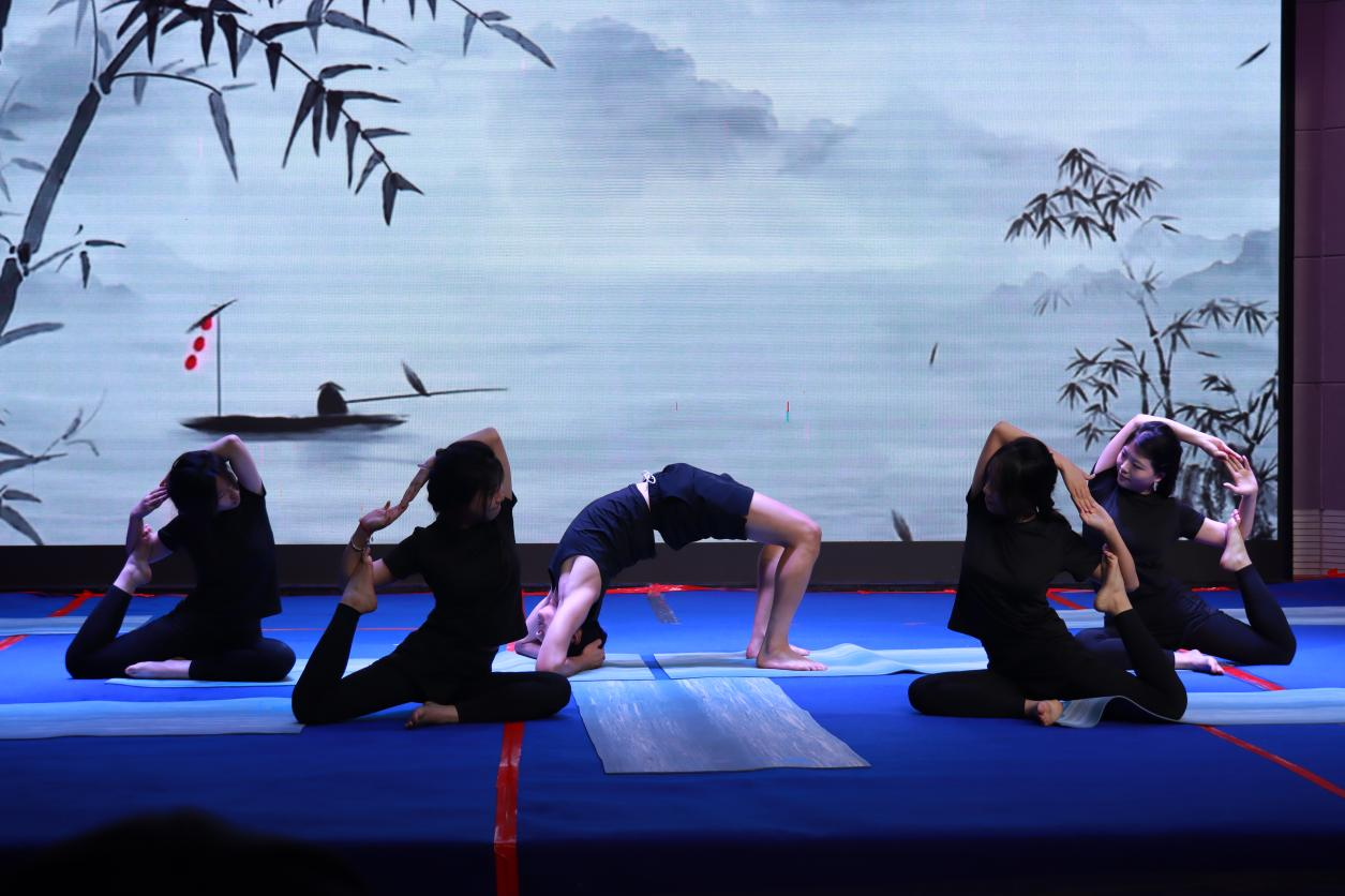 本次比赛设置健身瑜伽自编套路及规定套路两个项目,既考验选手的艺术创造力,又彰显瑜伽运动的规范性与技术深度。来自七个二级学院的参赛团队,“以身为笔、以息为墨”,在方寸之间勾勒出力与美的诗篇,宛如灵动的精灵,将身体的柔软与生命的力量完美融合,在这方舞台上绘就出灵动而美妙的画面。