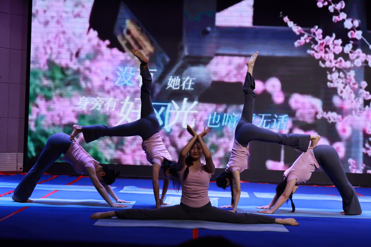 为进一步丰富学生第二课堂,为热爱瑜伽运动的同学提供一个切磋技艺、展现自我的平台,增强同学们的身体素质和团队协作能力,弘扬体育竞技精神,5月14日下午,由校团委、航空运动学院主办,航空运动学院团总支和校瑜伽协会承办的江西飞行学院首届“瑜悦同行,伽倍健康”瑜伽比赛在航空大楼多功能报告厅成功举办。