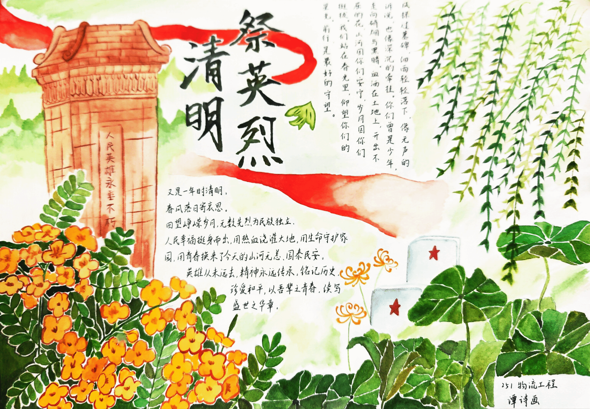 为深切缅怀革命先烈,传承红色基因,厚植青年爱国情怀,交通运输与工程学院团总支主办、学生会组织部承办的“缅怀革命先烈,传承红色基因,争做时代新人”清明节主题手抄报活动圆满结束。
