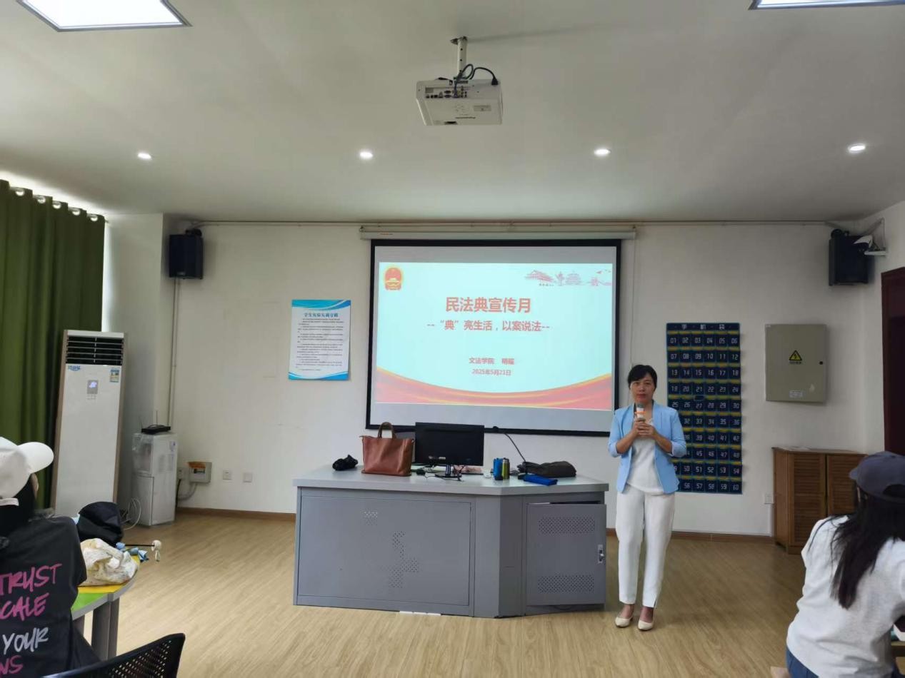2025年5月是第五个“民法典宣传月”,为深入学习宣传贯彻习近平法治思想,进一步推动民法典走到群众身边、走进群众心里,5月22日,文法学院讲师明耀老师于四教312教室开展了一场精彩的法治教育讲座。