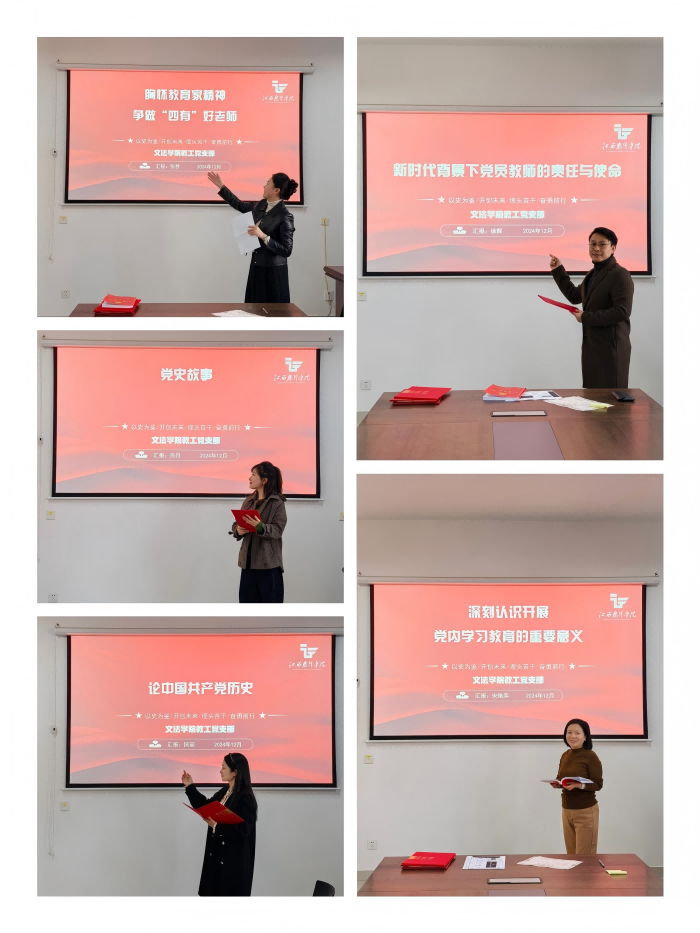活动中,5位党员分别讲授《新时代背景下党员教师的责任与使命》《胸怀教育家精神,争做“四有”好老师》《深刻认识开展党内学习教育的重要性》《党史故事》和《论中国共产党故事》等系列微党课,深入讲解党员教师的责任、使命,争做“四有”好老师。在讲解过程中,党员们运用多媒体手段,通过生动的图片、鲜活的案例和简洁明了的语言,使党课内容深入浅出、通俗易懂,增强了党课的吸引力和感染力。