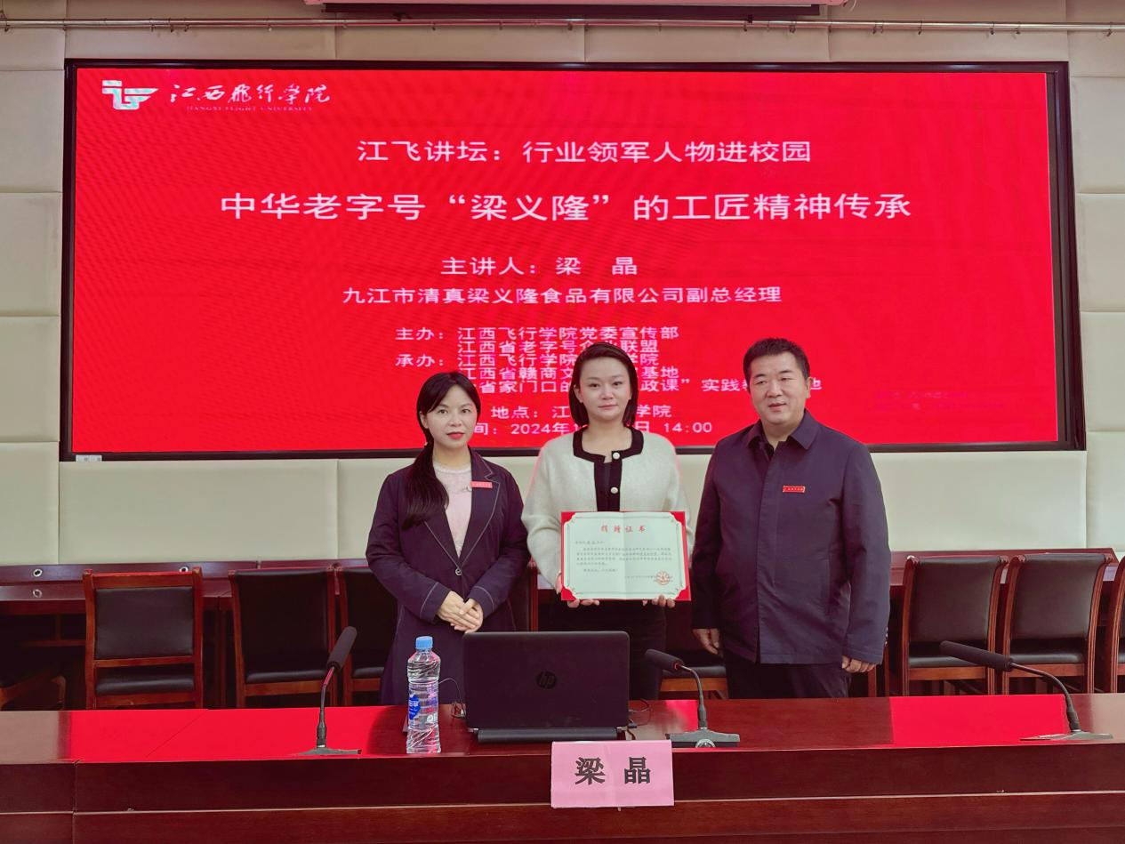 10月25日下午,江飞讲坛之“行业领军人物进校园——梁义隆的工匠精神传承”在我校一教学术报告厅举行。