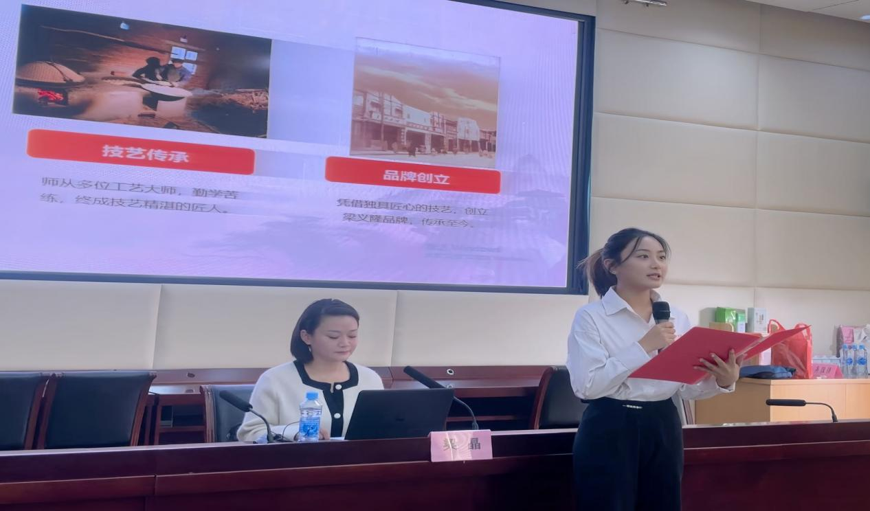 食品行业领军人物、江西省九江市清真梁义隆食品有限公司副总经理、非物质文化遗产市级代表性传承人梁晶,为师生带来一场关于“梁义隆”工匠精神传承的精彩讲座。梁晶从品牌历史讲起,深入阐述了工匠精神的精髓——精益求精、专注执着和创新进取,这些品质让老字号企业在新时代焕发迷人魅力。梁晶与师生的互动环节将现场气氛推向高潮。现场气氛活跃,思维碰撞不断。