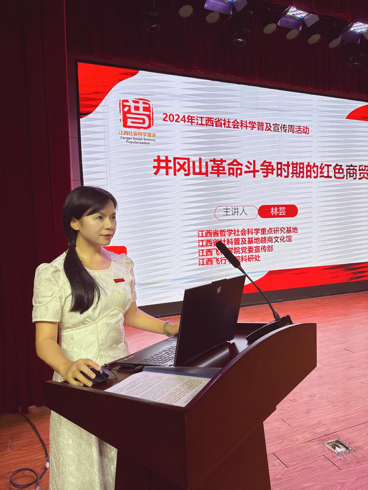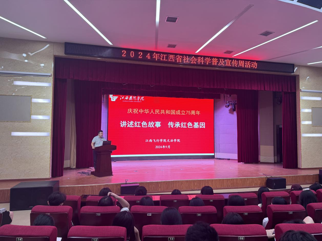 为积极响应中共江西省委宣传部与江西省社联共同发起的2024年江西省社会科学普及宣传周活动的号召,9月29日,文法学院院长、江西省赣商文化研究基地主任林芸教授在江西飞行学院航空大楼会议厅开展了《井冈山革命斗争时期的红色商贸》专题讲座。文法学院副书记曹国平担任主持。300余名师生现场参与,100名师生通过腾讯会议观看直播。此次讲座也是文法学院为庆祝中华人民共和国成立75周年精心策划的系列活动之一。