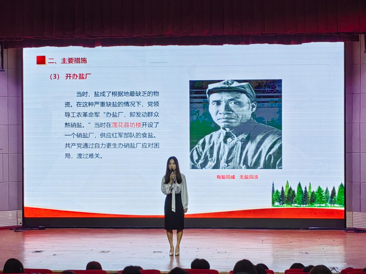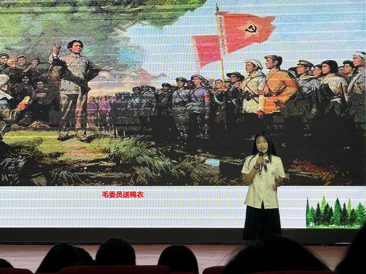 为了增强讲座的互动性和参与度,讲座过程中穿插了由红色故事英语宣传队的精彩表演,包括“毛委员送棉衣”“有盐同咸、无盐同淡”故事讲述、“西江月·井冈山”诗词朗诵及“灯火里的中国”舞蹈表演等。这些节目与讲座内容相得益彰,共同打造了一堂集“讲、演、诵”于一体的思政大课,为听众带来了一场视听盛宴。